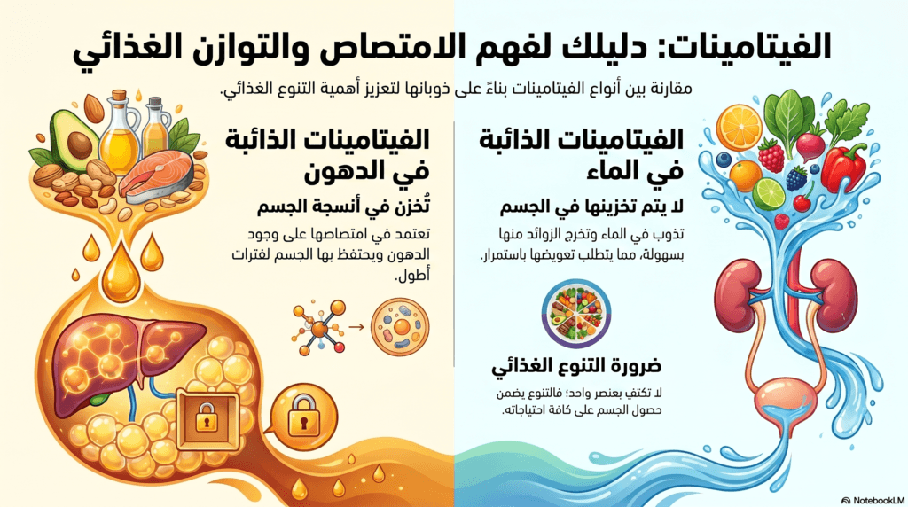 ما الفرق بين الفيتامينات الذائبة في الدهون والفيتامينات الذائبة في الماء؟