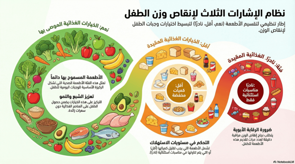 هل تبحثين عن طريقة آمنة لتقليل وزن الطفل دون حرمان أو رجيم قاسٍ قد يضر بنموه؟