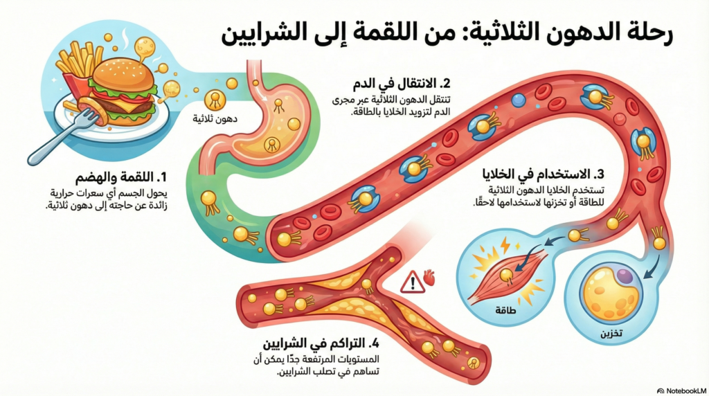 رحلة الدهون الثلاثية داخل الجسم