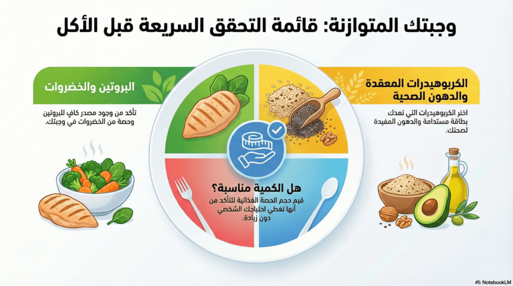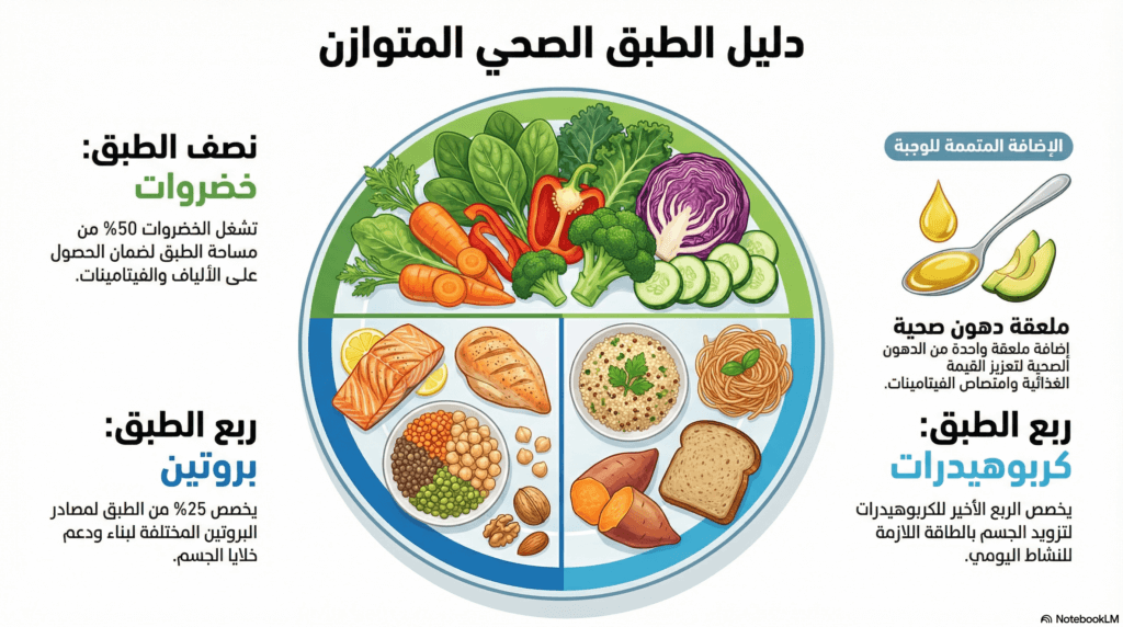 إذا كان هدفك خسارة الوزن بطريقة مستدامة دون حرمان، ففهم كيفية تكوين الطبق المتوازن هو الخطوة الأولى. يمكنك قراءة الدليل الكامل هنا: