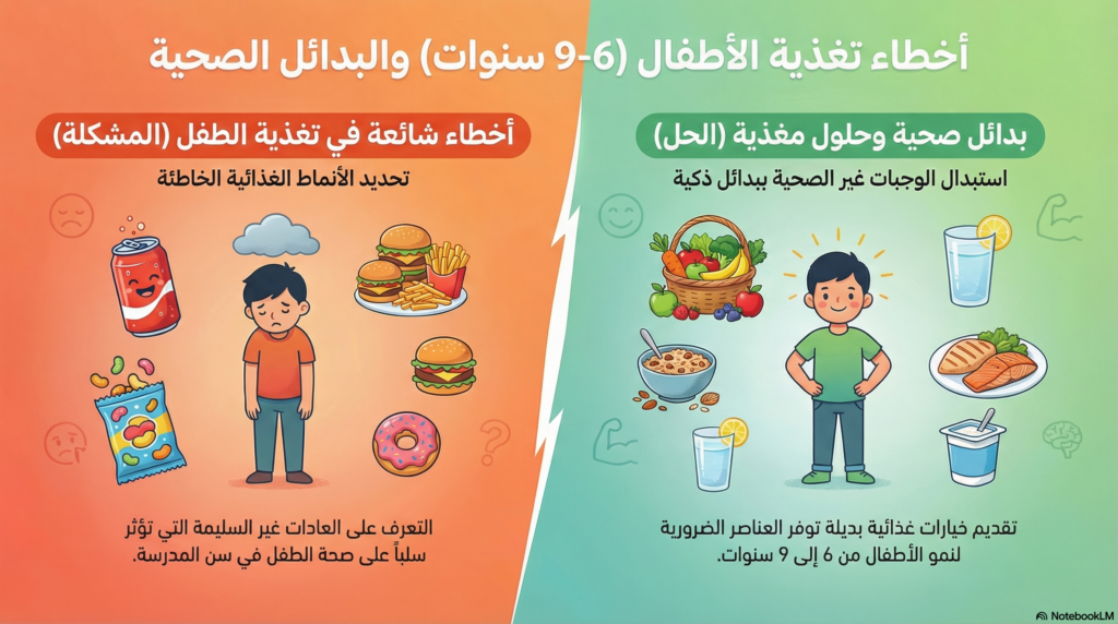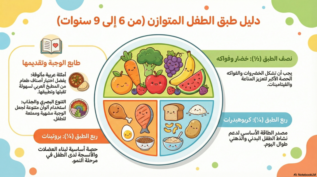 تغذية الطفل في عمر 6 إلى 9 سنوات ليست مجرد تقديم الطعام، بل هي أساس للنمو السليم والتركيز والنشاط اليومي.