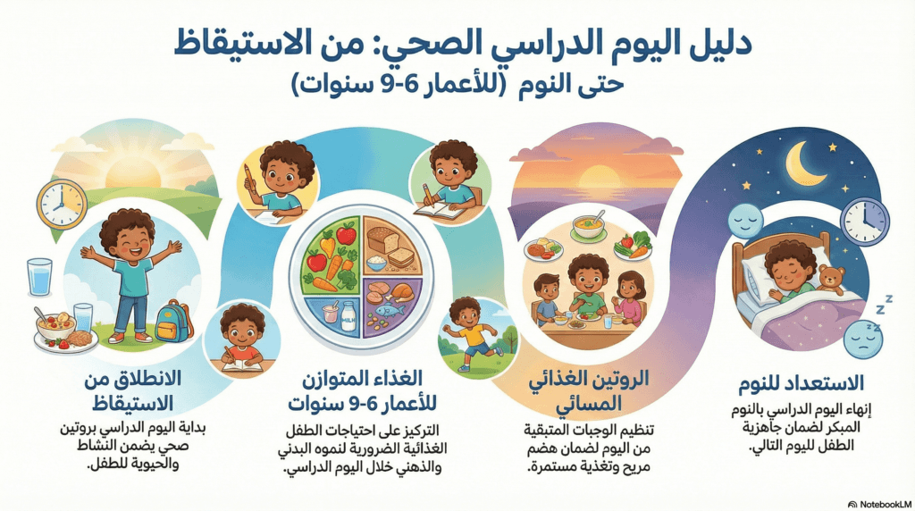 جداول يومية مقترحة لوجبات طفل 6–9 سنوات (أيام المدرسة)